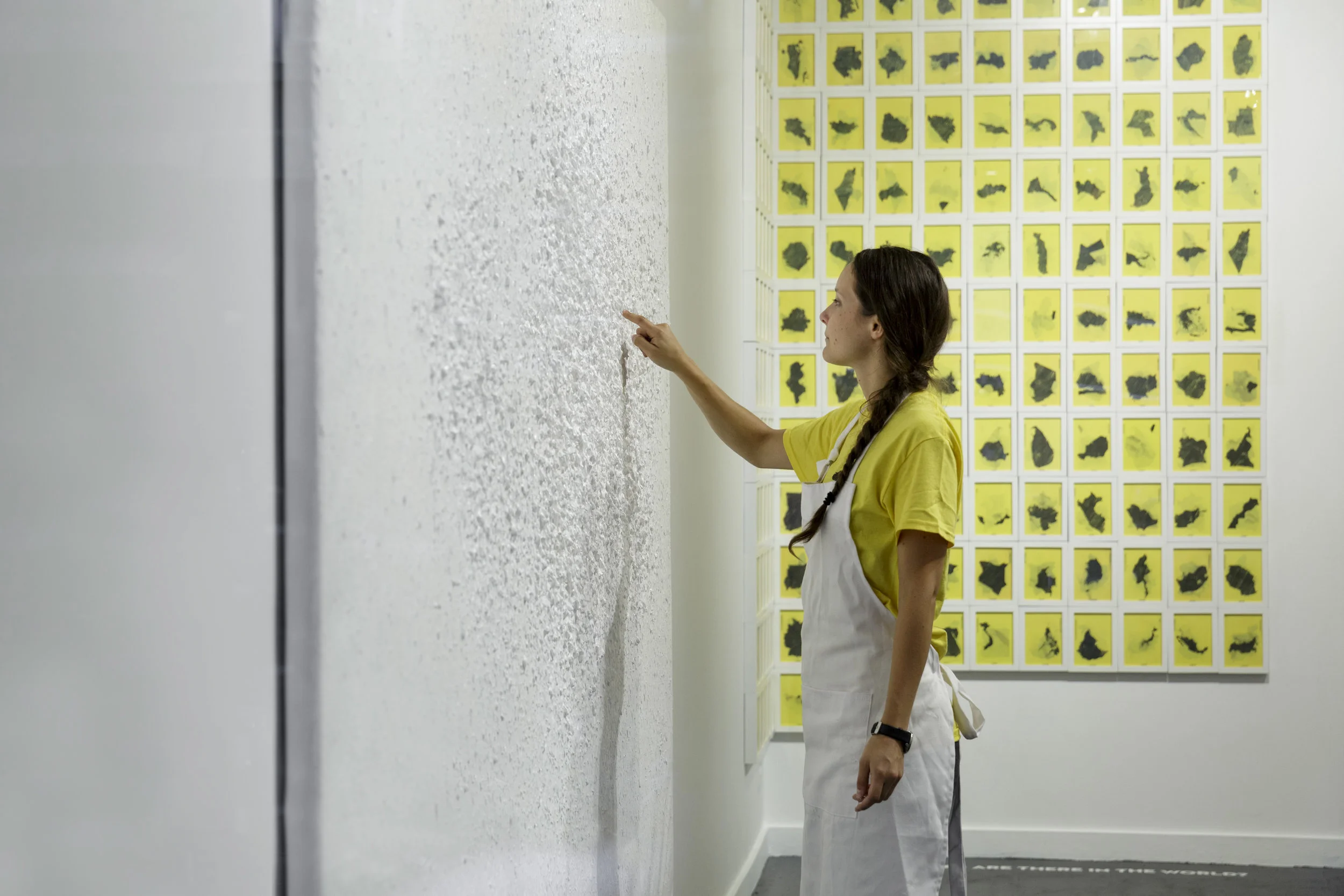 This ten-year-long painting is a world map marked with every death I come across: one death, one stroke. White on white, the marks have built up over the years and now reveal themselves to viewers through the shadows of their thickness. They morph our usual political map into one of a radically different relief, where certain places bleed out of their physical location onto neighboring countries through the sheer number of their human losses. By translating huge numbers into time, space, and paint, the piece is a quiet observation of our daily abstraction of events and tragedies physically removed far from us and our difficulty relating to what is only accessible through the selective broadcast of the media.