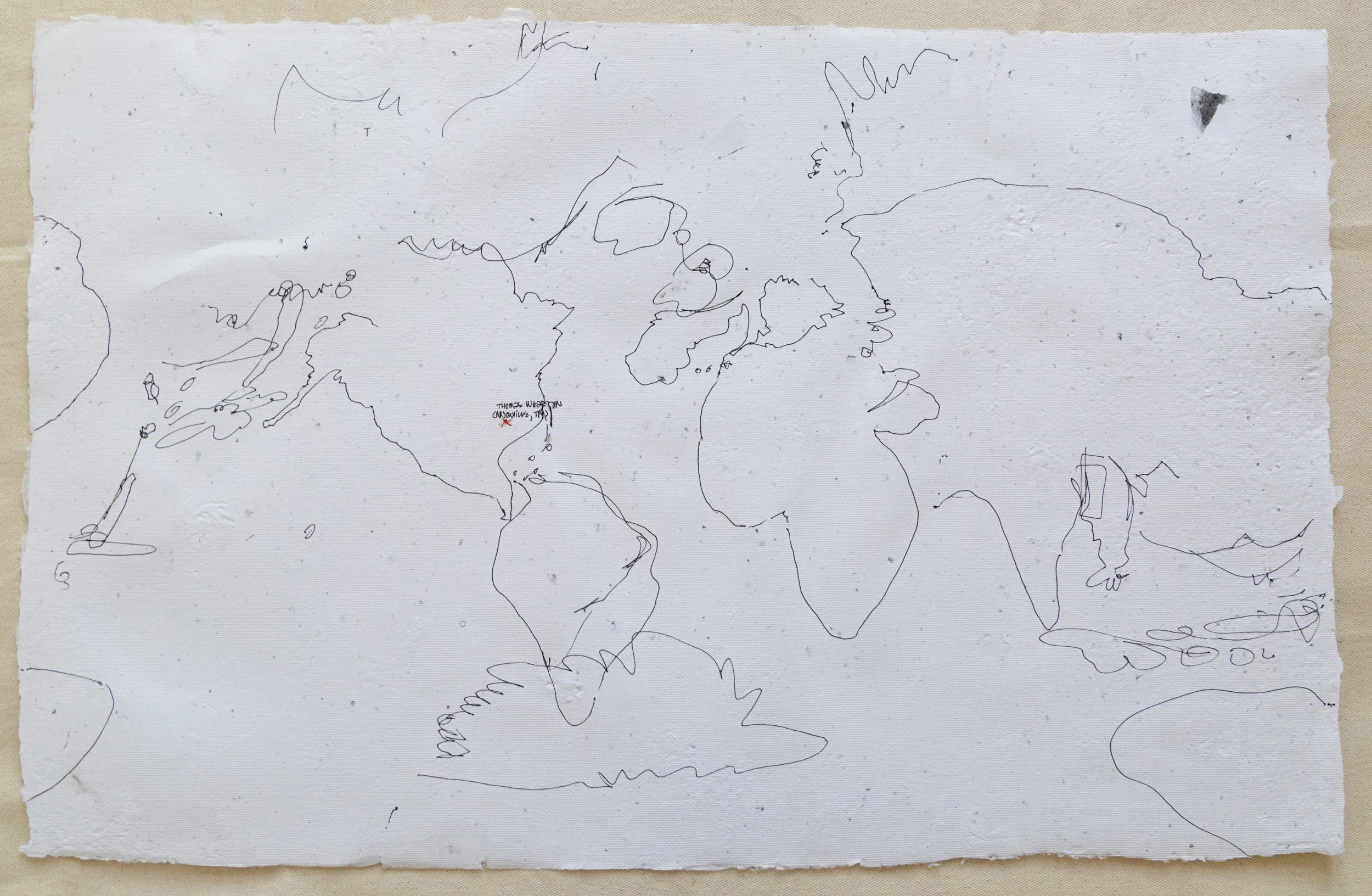 Workshops with pen or ink and hand-stitched thread on various papers, dimensions variable